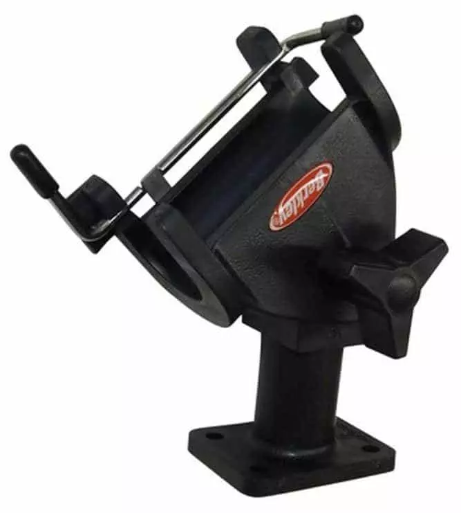 The Berkley Quick Set Fishing Rod Holder ideal for all types of boats. It is extremely versatile and has multiple mounting options including rail mount, side mount, flush mount & pedestal mount.