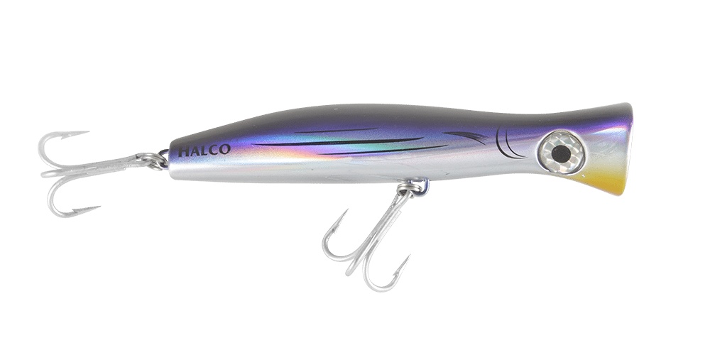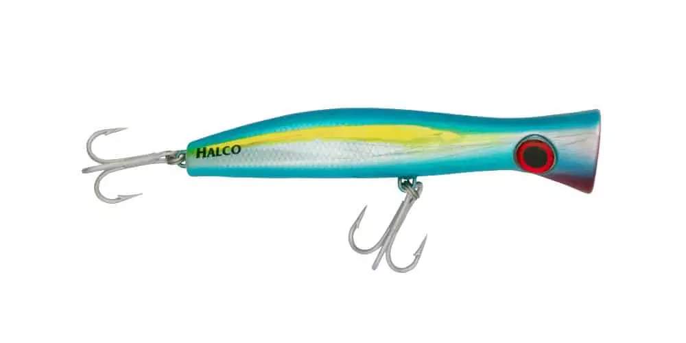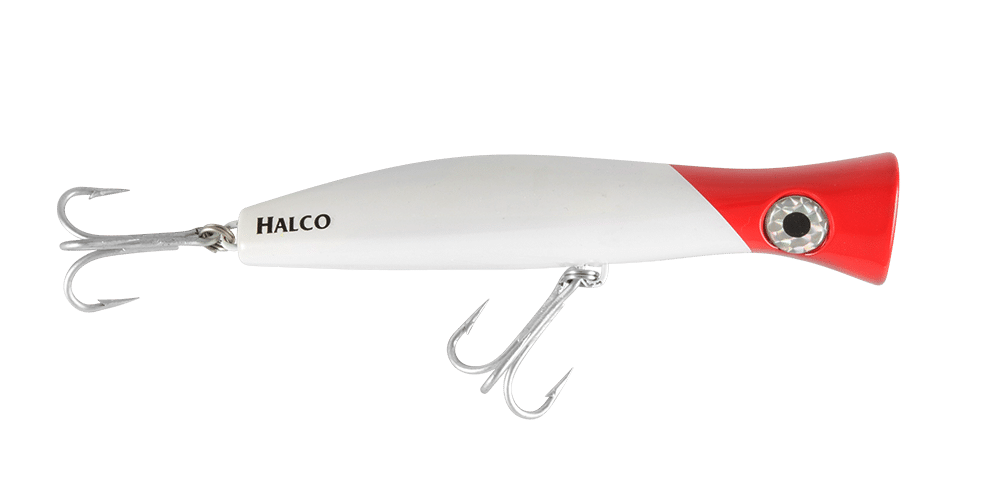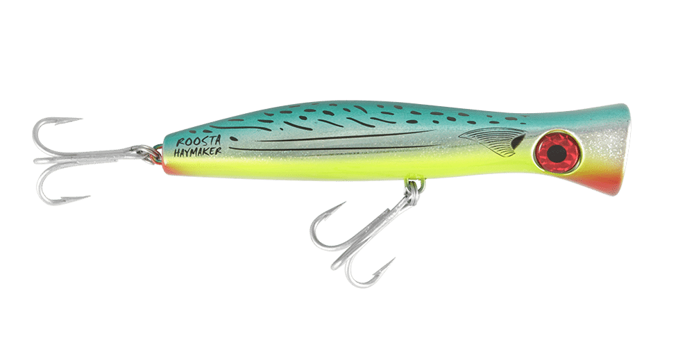 The Halco Roosta Popper 195 Haymaker is designed for catching some of the toughest fish that swim, from Giant Trevally to Dogtooth Tuna. It is built with extra heavy duty, custom made 7xx fish rings and is equipped with Mustad 5 extra strong 5/0 trebles.