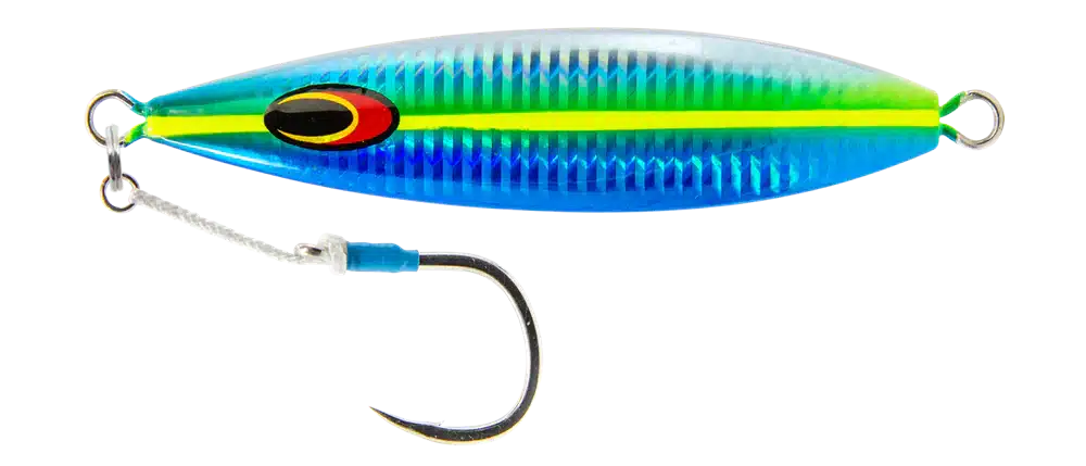 The sizes available mean you can fish this in shallow water for Grouper and Snapper, through to deep water for Yellowtail, Amberjacks and Tuna. The smaller jigs work very well when “jiggled” just near the bottom for a range of reef species.