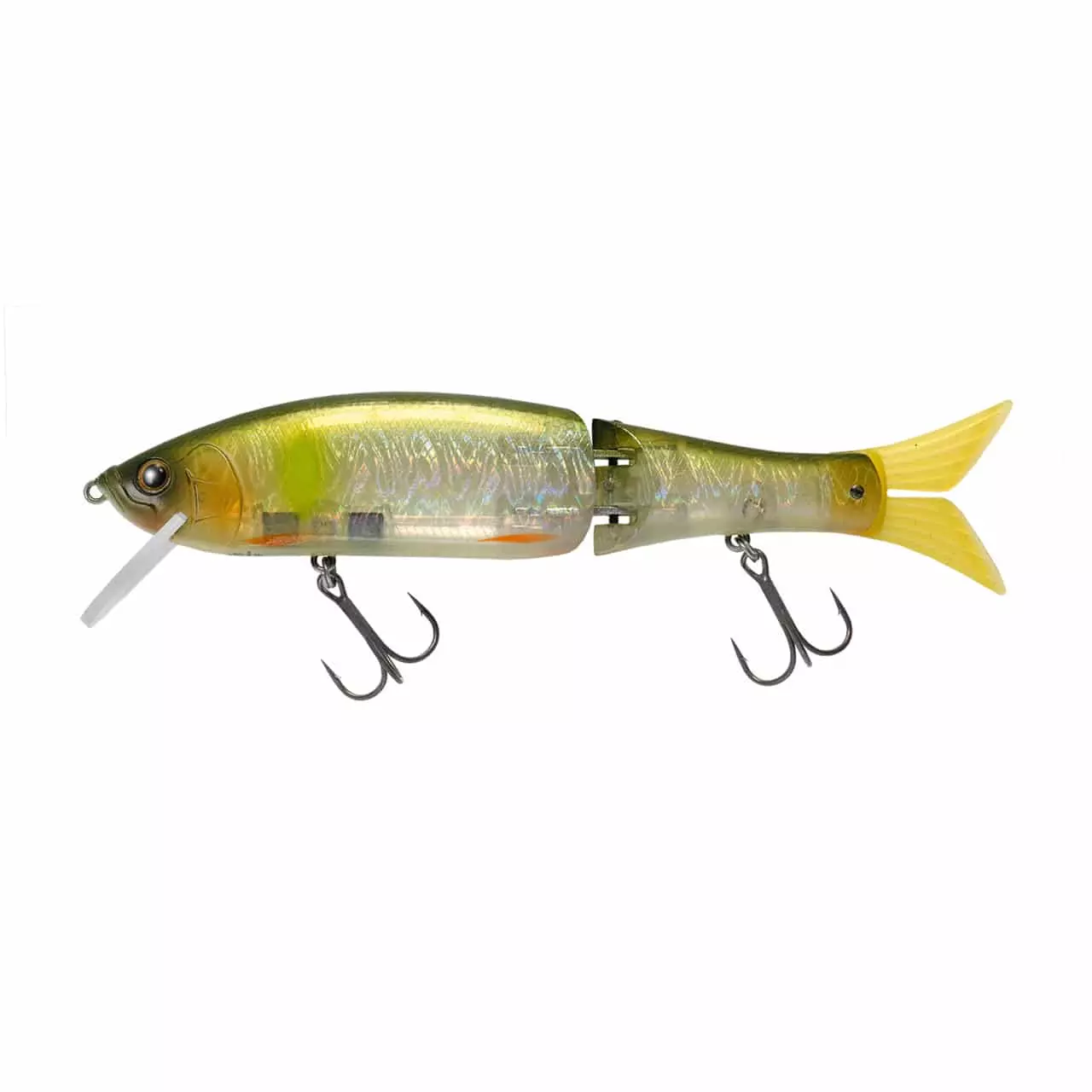 An innovative jointed swimbait, MB-1 Custom features NTD (Natural, Tight, Dead slow) system. It enables anglers to select 3 different ranges of motion by changing a position of the joints. As a result MB-1 Custom performs quick responses and wide range of actions from slow to fast, walking dog action to erratic jerking action. 2 feathered hooks are included for user’s customization.